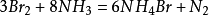 溴單質(zhì)能與大部分單質(zhì)化合,部分需要加熱或其它條件。氫與溴在含鉑的石棉或硅膠催化下,加熱至200~400°C可以化合為溴化氫。溴可以把磷(0)氧化為磷(+3):  ,生成的三溴化磷為液體,摻雜著部分五溴化磷。溴與一氧化碳反應(yīng),可得到碳酰溴:  。與氨反應(yīng),生成溴化銨與氮?dú)猓?/span>  。