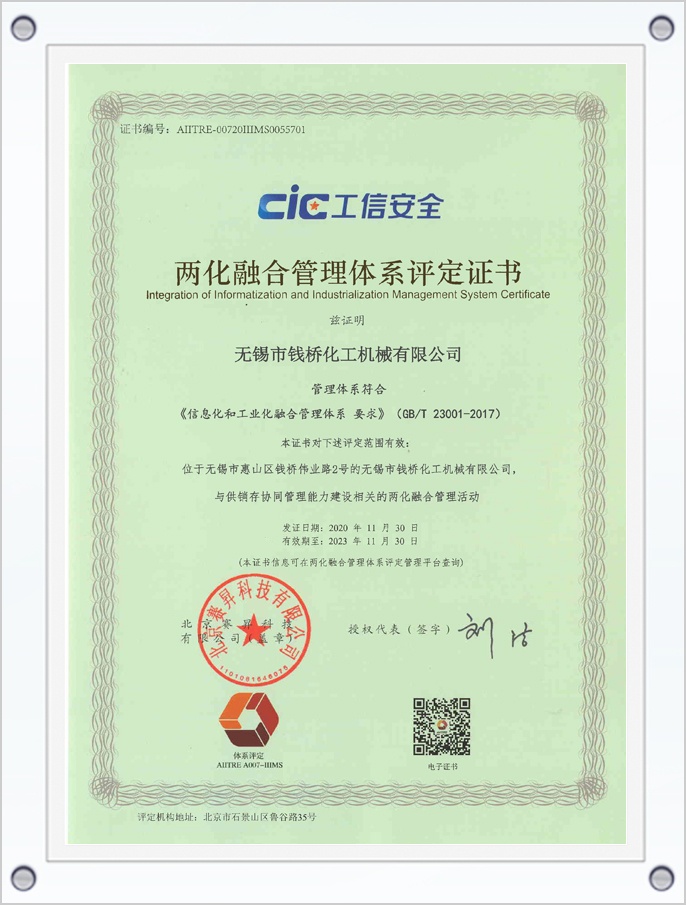 兩化融合管理體系評(píng)定證書
